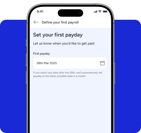 • Your chosen first salary payment date